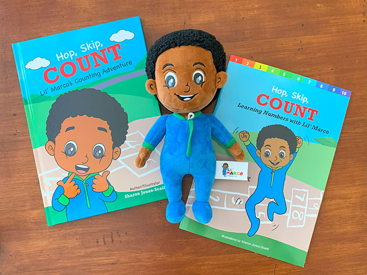 Lil’ Marco Premium Bundle with Plushie includes: 1 copy of It’s Bedtime Lil’ Marco, 1 copy of Lil’ Marco Plays Hide and Seek, 1 copy of Hop, Skip, Count, the 24-page LM Coloring and Activity Book, Hip, Skip, Count Activity Book, and a 9″ Lil’ Marco Plushie! You can choose from a hardcover or paperback bundle!